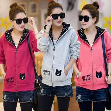 秋冬地攤雜款女衛衣 外貿原單韓版連帽女 冬加絨加厚連帽衛衣外套 /