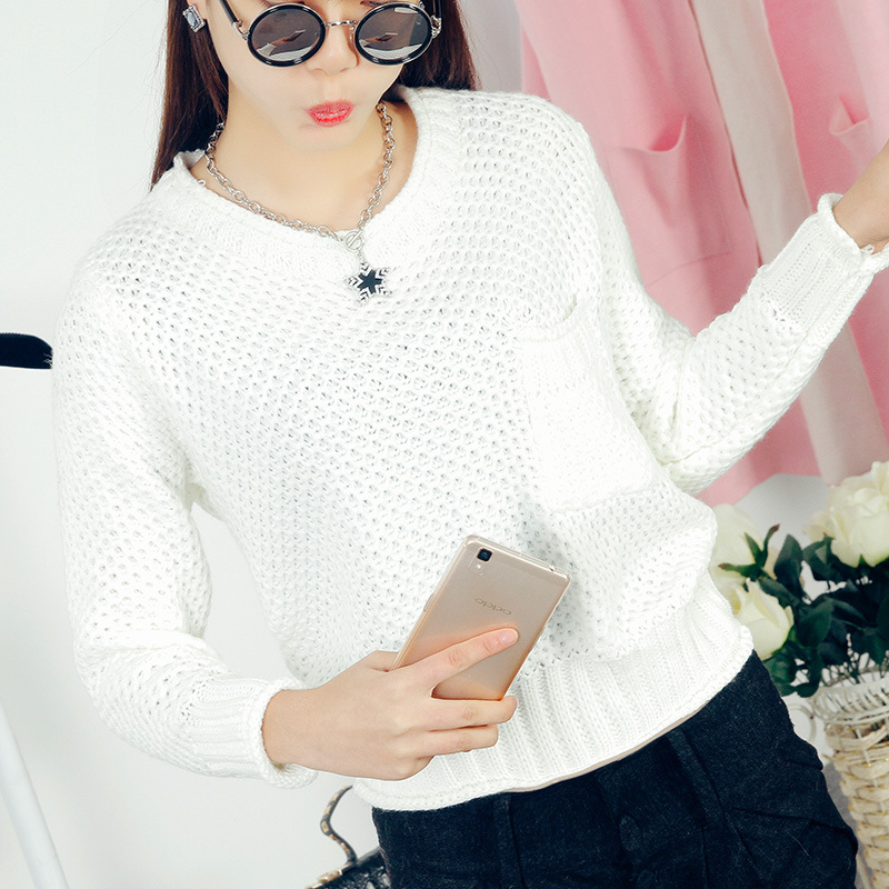 韓版寬松毛衣女套頭圓領短款冬季加厚秋裝秋季新款學院風學生上衣 /