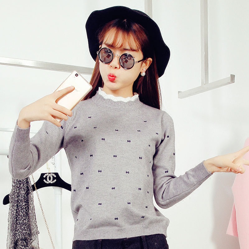 2015秋冬新款女士韓范刺繡蝴蝶結套頭毛衣打底衫修身半高領針織衫 /