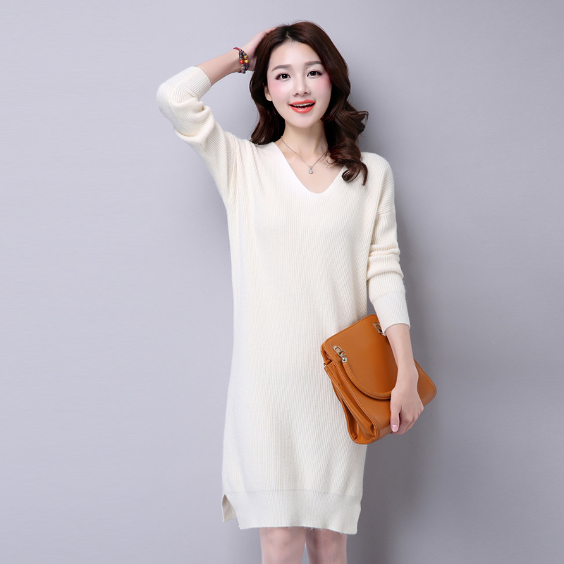 2015秋冬新款女裝針織衫中長款V領套頭毛衣韓版長袖開叉打底衫潮 /
