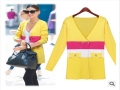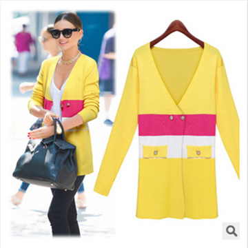 2014新款秋裝歐美修身女裝針織衫女開衫拼色 /