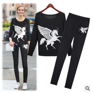 簡介: 產地廣州 主圖來源其他來源 貨源類別現貨 是否庫存否 風格甜美 圖案印花 款式褲套裝 上衣款式針織衫 上衣袖長長袖 流行元素印花 工藝印花/印染 上市年份/季節2014秋季 面料名稱棉 主面料成分棉 主面料成分的含量90(%) 顏色黑色 尺碼均碼 面料雪紡/喬其紗