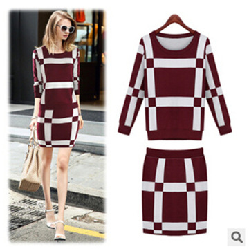 2014歐美秋季新款歐洲站圓領長袖針織套裝包裙 /