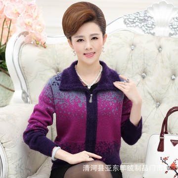 廠家批發(fā)中老年女裝秋裝外套媽媽裝針織衫開衫毛衣老年人加厚外套 /
