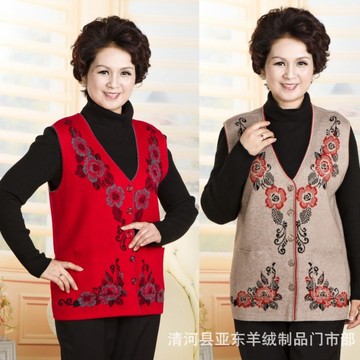 中老年女式馬甲羊毛坎肩秋冬新款V領(lǐng)媽媽裝針織羊毛背心開衫外套 /