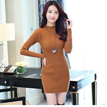 苞芯沙秋冬韓版中領修身中長款毛衣女包臀加厚羊毛衫針織打底衫 /