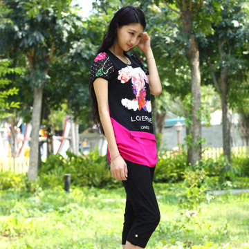 2015新款夏裝中年女士服裝 休閑寬松圓領(lǐng)印花女裝短袖上衣T恤 /