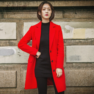 2015秋冬季歐美大牌羊毛呢子大衣女中長款高檔時尚修身毛呢外套 /
