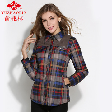 俞兆林羽絨襯衣 OL格子羽絨襯衫女 修身百搭保暖不臃腫 /