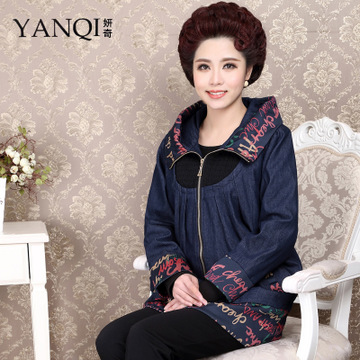 2015新款中老年春秋外套女裝特大碼牛仔外套寬松顯瘦媽媽風衣中長 /