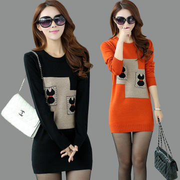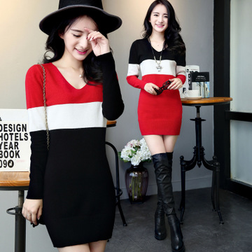 欣瀟1秋冬新品女式年輕款中長款韓版修身女裝毛衣裙 針織打底衫 /