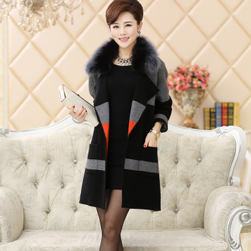 欣瀟歐洲站精品女裝貂絨大衣高端針織條紋時尚狐貍毛毛領女式外套 /