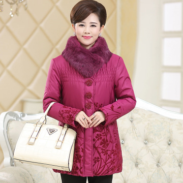 中年女裝冬裝新品毛領(lǐng)棉衣大碼 加絨40-50歲媽媽裝中年人女士棉服 /