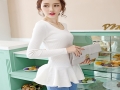 2015秋冬韓版女裝修身顯瘦毛衣魚尾荷葉邊裙擺純色針織打底衫 /