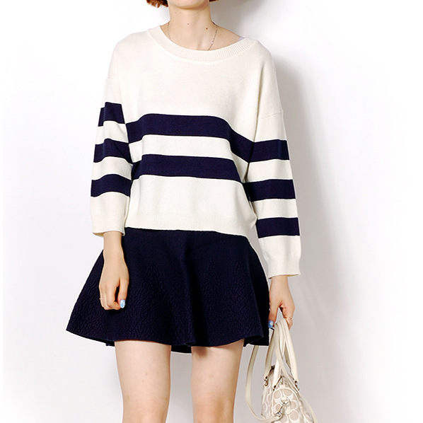 歐美大牌條紋修身套頭打底毛衫貼牌來圖來樣加工 /