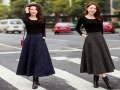 2015毛呢半身長裙秋冬新款修身格子半身長裙 大擺加厚A字裙 /