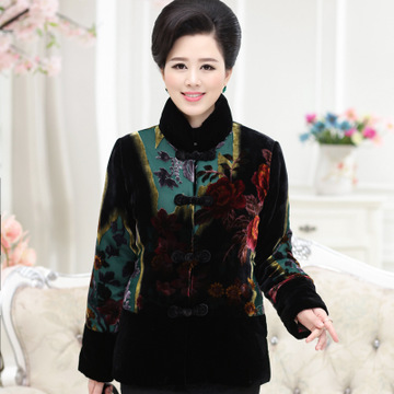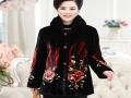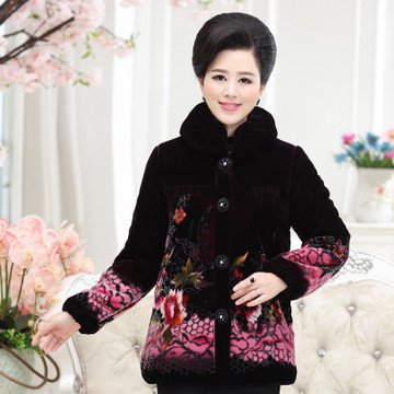 2015翻領長袖修身媽媽裝圓弧下擺外套中老年女轉真絲絨手繪棉衣 /