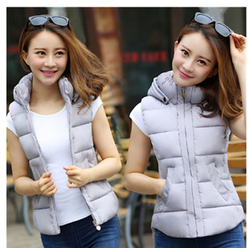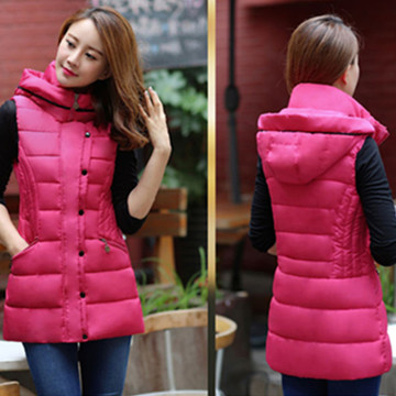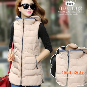 2015新款中長款女式羽絨棉馬甲秋冬季韓版修身顯瘦連帽女士棉背心 /