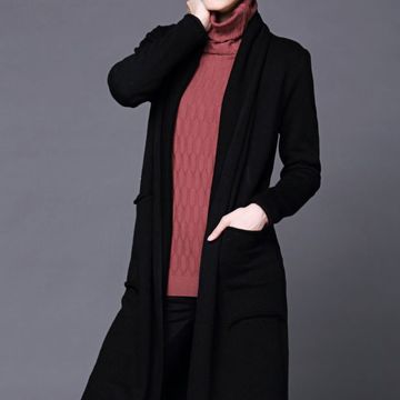 秋裝新款女式毛衣 歐美寬松顯瘦針織衫開(kāi)衫 純色長(zhǎng)款針織外套女 /