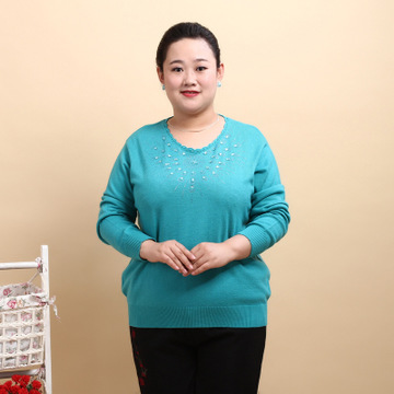 200斤胖媽媽秋冬裝 特大碼中老年女裝 時尚鑲鉆V領針織羊毛衫加肥 /