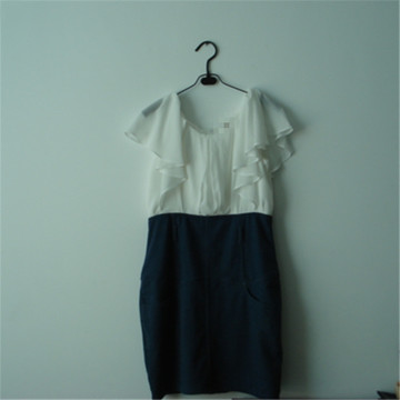外貿原單雪紡牛仔連衣裙夏裝顯瘦短袖女裝潮 /