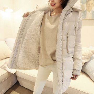 卡西玫 2014新款中長款加厚羊羔毛軍工羽絨服韓版大碼女裝外套潮 /