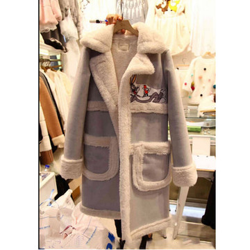 秋冬裝新款胖mm棉服大衣上衣中長款印花外套兔巴哥 /