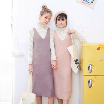 實拍2016春季新款t恤+文藝復古針織毛線背心連衣長裙吊帶背帶 /