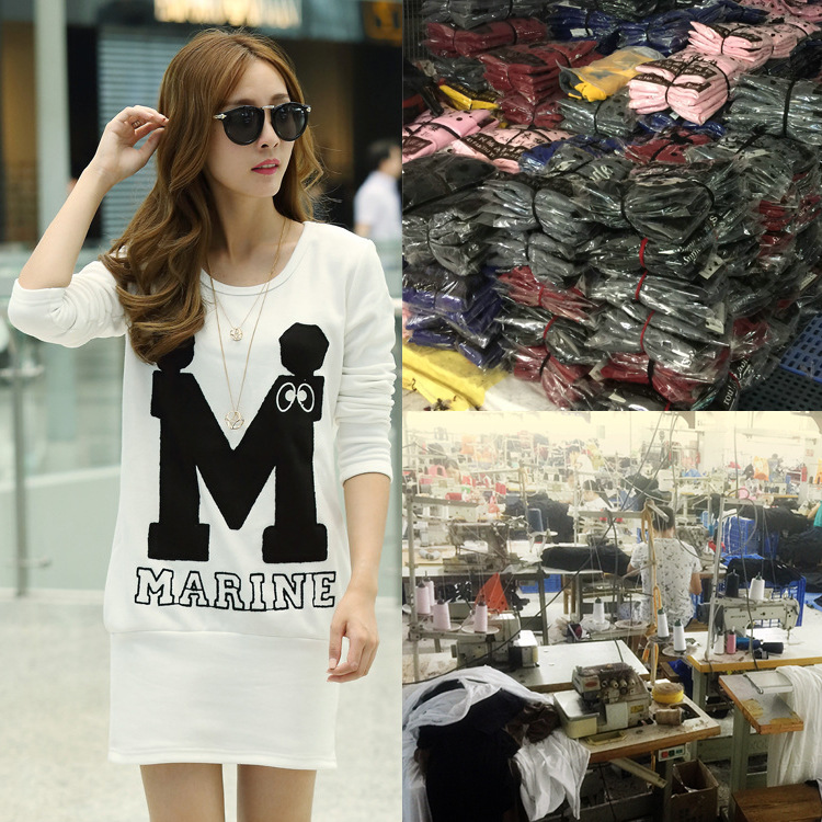2015秋冬新款全棉衛衣抓毛加厚顯瘦繡花英文頭帽長款廠家直銷 /