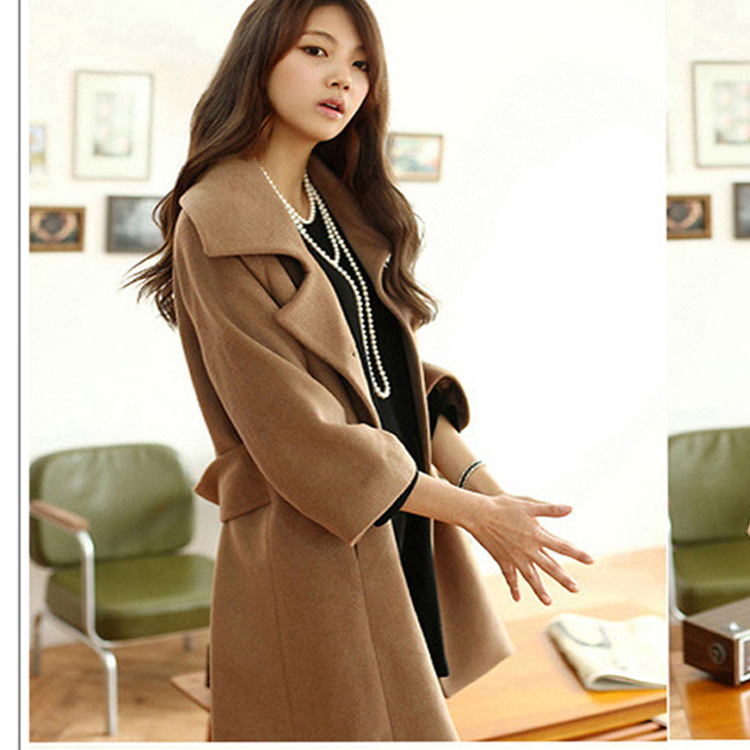 2015早春新款韓版毛呢大衣韓版呢子外套雙排扣大碼寬松女裝中長款 /