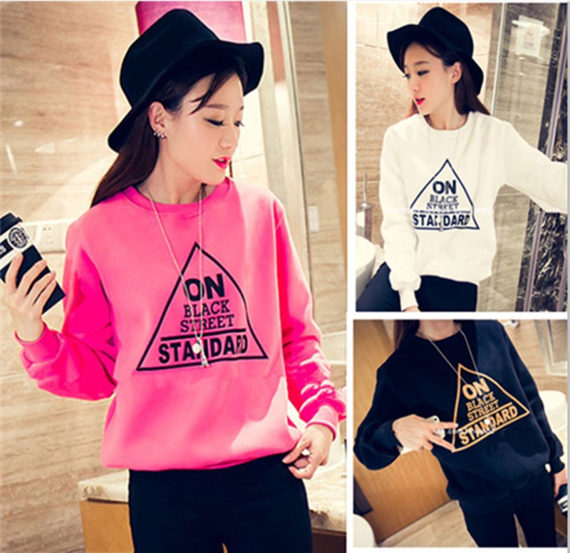 2015春秋季新款韓版女士上衣寬松圓領套頭抓絨加厚長袖字母衛衣女 /