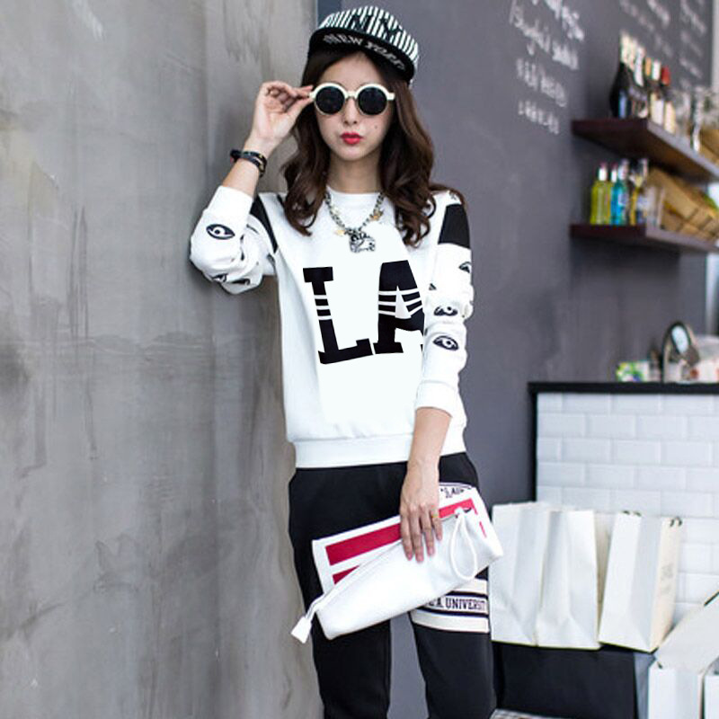 2015韓版秋冬季時尚衛衣套頭女學生棒球服兩件套長袖休閑運動套裝 /