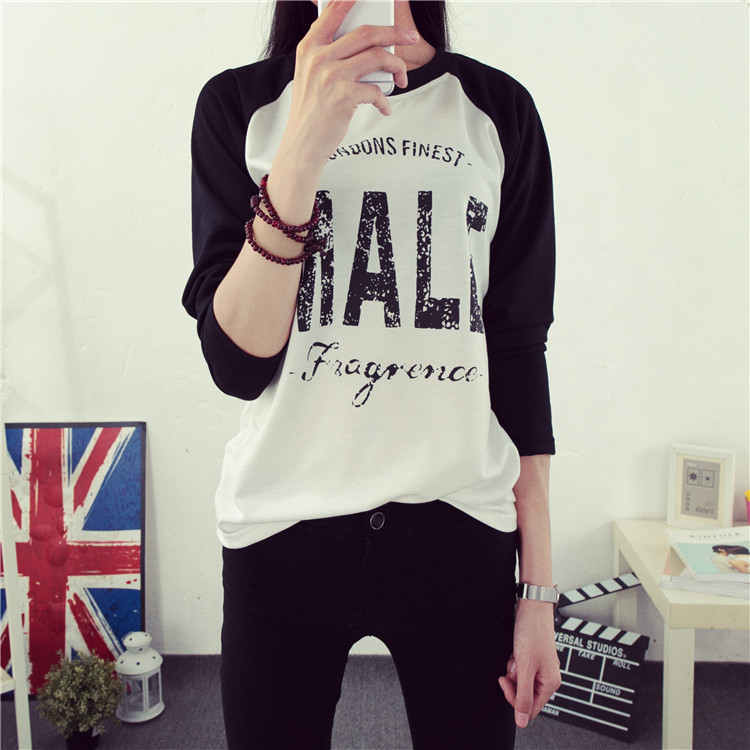 秋裝新款韓版大碼女裝學生范插肩字母印花寬松長袖圓領女T恤上衣 /