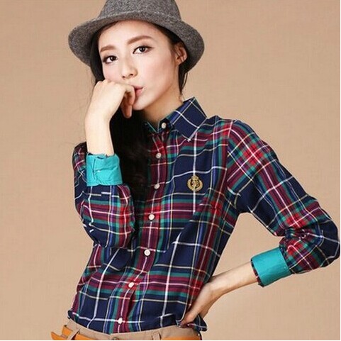 批發供應 2015秋季新款女式襯衫 格子襯衫女士長袖多色襯衫加工! /