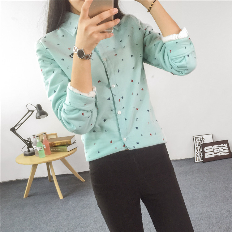 2015新品加絨 韓國襯衫大碼女式襯衫 襯衣批發 長袖女羊羔絨襯衫 /