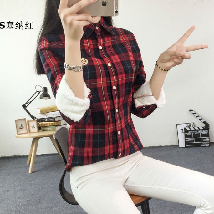 襯衫女冬季新款韓版加厚加絨羊羔絨長袖格子襯衣 保暖外套女 /