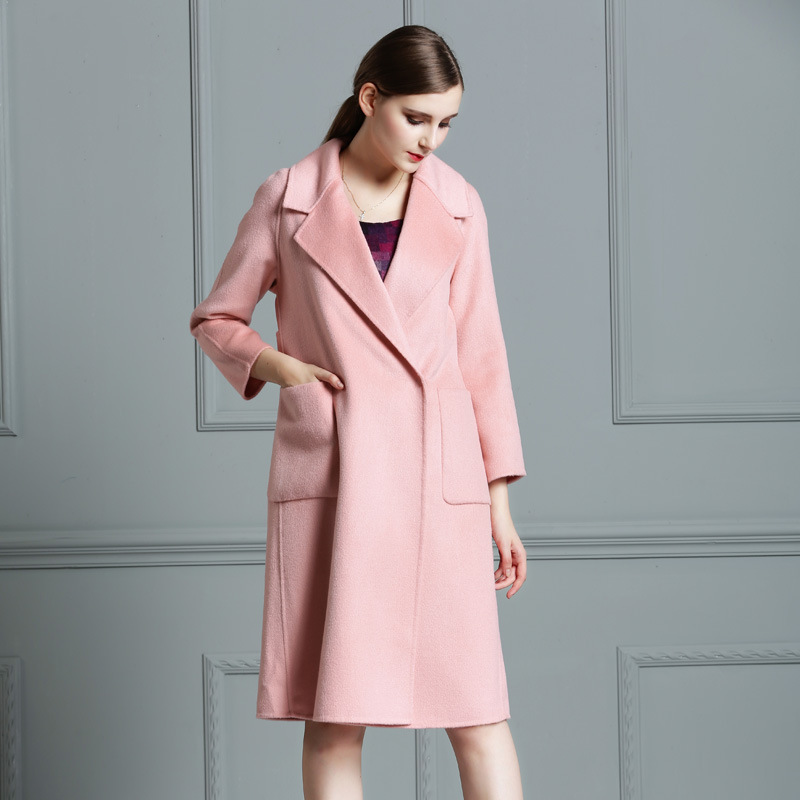 2015冬新款歐美大牌手工雙面羊絨大衣女高端加長款翻領(lǐng)修身呢外套 /