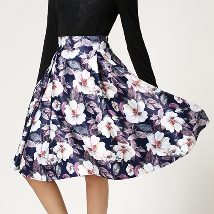 歐美時尚2015秋季新款花朵印花半身裙 女裝高腰大擺蓬蓬裙 批發潮 /