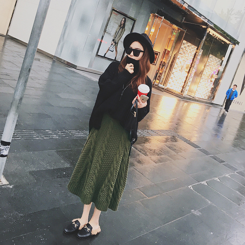 2015秋冬新品韓版百搭松緊腰中長款純色麻花毛線半身裙女保暖潮 /