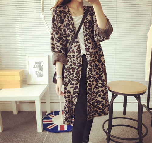 2015韓版秋冬新款豹紋長袖外套毛衣女秋裝開衫針織衫韓國東大門 /