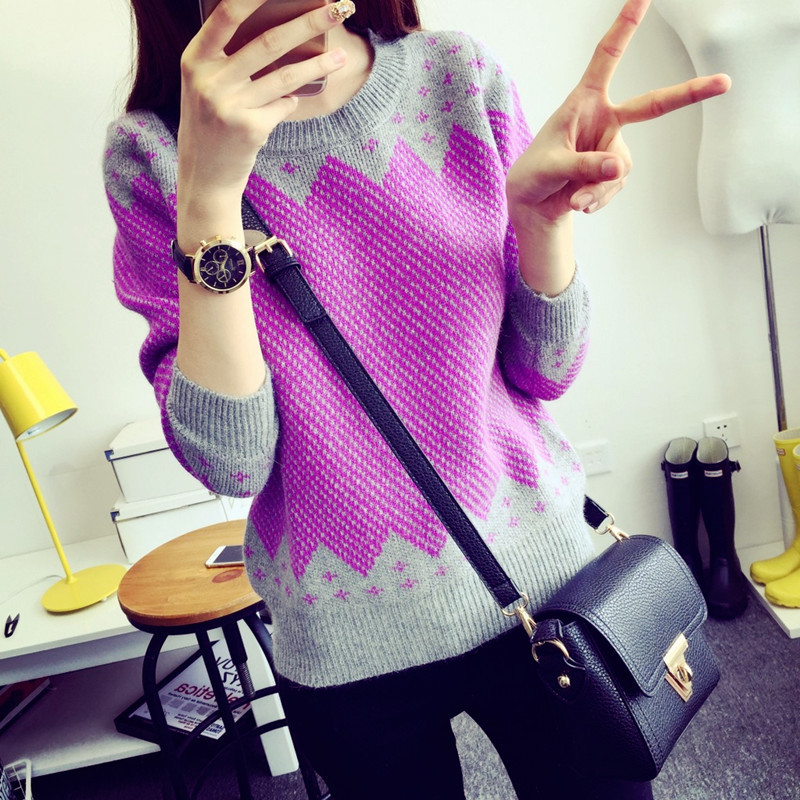 韓版秋冬新款女裝圓領針織衫打底衫顯瘦打底毛衣套頭寬松毛衣女 /