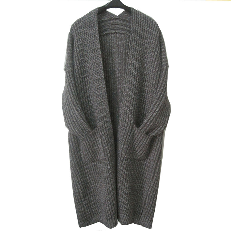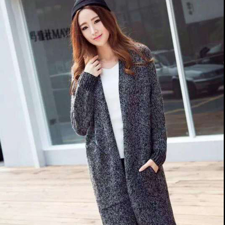 2015韓版兔毛加長款百搭顯瘦毛衣女外套女裝針織超大口袋開衫 /