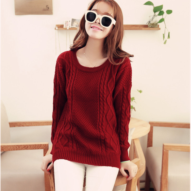 2015秋冬款韓版復古小麻花加厚圓領純色女式女裝毛衣 毛衫 /