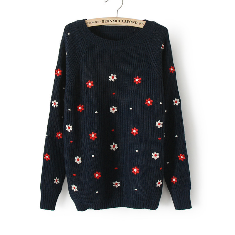 2015新款韓版時尚百搭顯瘦小清新刺繡彩色太陽花 毛衣女 /
