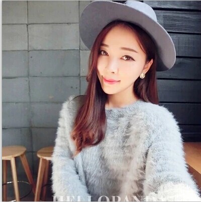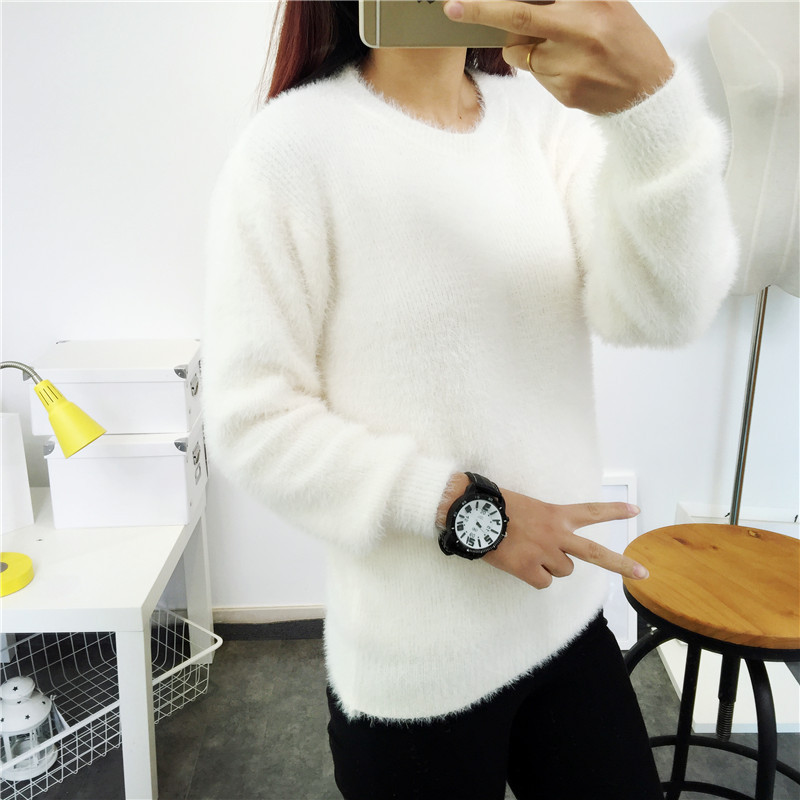 2015秋冬韓國寬松套頭圓領仿貂絨馬卡龍色加厚長袖馬海毛毛毛衣女 /