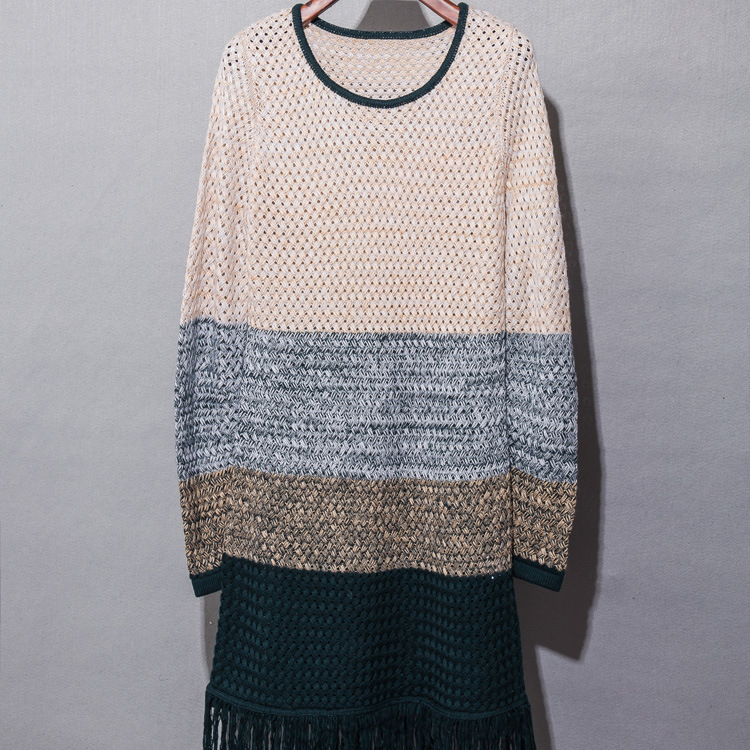 簡(jiǎn)介: 貨源類別現(xiàn)貨 主圖來源實(shí)拍無模特 風(fēng)格歐美 圖案條紋 工藝拼貼/拼接 產(chǎn)地深圳 庫存類型整單 款式基本款 組合形式單件 裙長(zhǎng)中長(zhǎng)裙 裙型公主裙 領(lǐng)型圓領(lǐng) 袖型常規(guī)袖 袖長(zhǎng)長(zhǎng)袖 腰型中腰 衣門襟套頭 流行元素拼接,撞色,流蘇 上市年份/季節(jié)2015冬季 面料名稱毛混紡 主面料成分羊毛