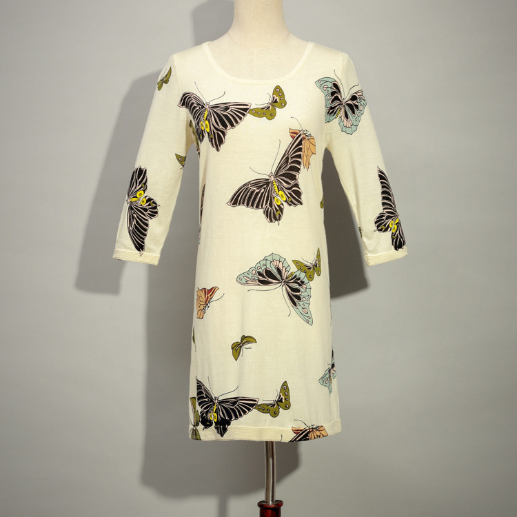 2015秋冬新款 歐美時(shí)尚女裝 圓領(lǐng)羊絨印花 中長(zhǎng)款毛衫裙 /