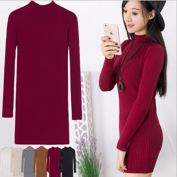 針織衫 女式 韓版毛衣半高領(lǐng)中長款秋冬款打底衫新款女裝修身 /