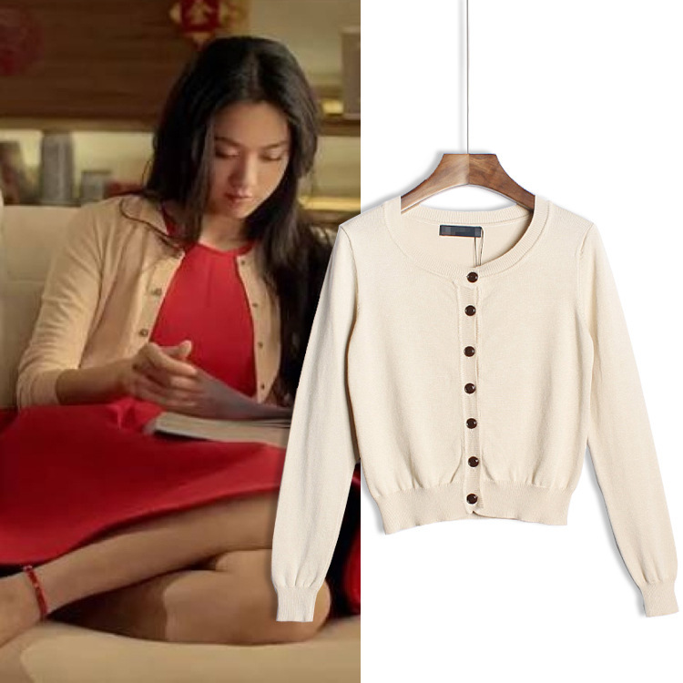 湯唯明星同款春秋新款毛針織衫外穿開衫韓版圓領(lǐng)修身百搭毛衣外套 /
