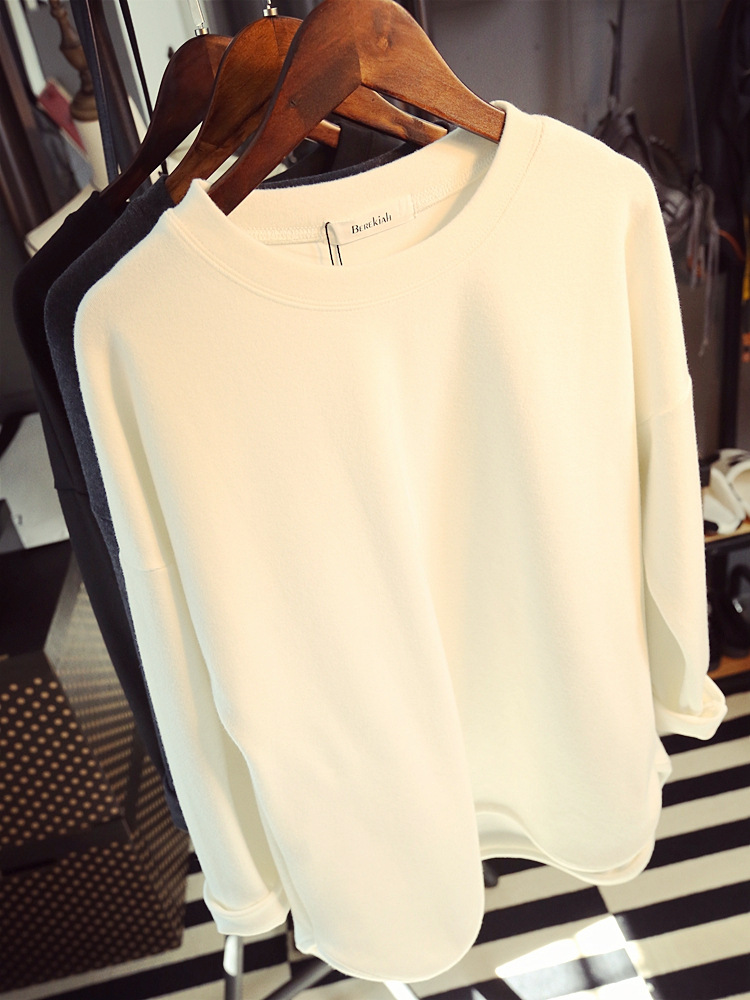 7112#2015 看著簡單穿上有范!很厚實磨毛棉開叉打底衫T恤長袖t恤 /